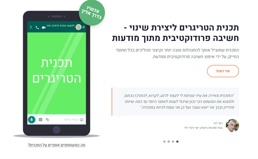 אתר ריספונסיבי פרללי מלא, שלושה עמודי One-page.